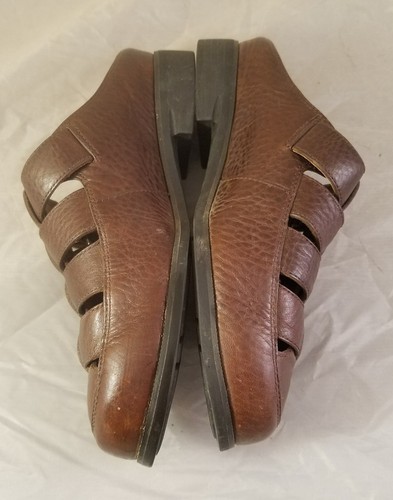 A la venta es un gentilmente usado par de mulas tipo zuecos deslizantes con hebilla de herradura de cuero ARIAT. Los zapatos son talla 6,5 ??B y estan ligeramente desgastados.