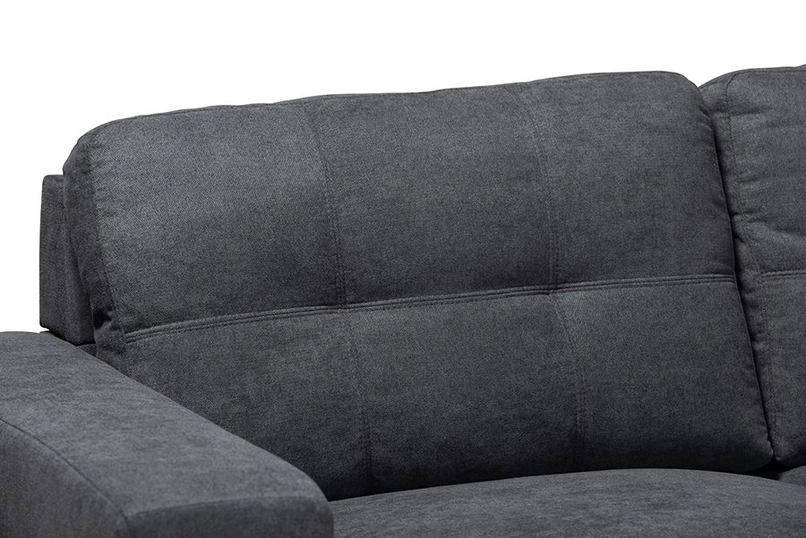 Clean lines and plush cushions give the Dalinda sofa contemporary appeal. Constructed from wood, the Dalinda is upholstered in a chic Graypolyester fabric. Wide, supple cushions provide ample comfort and relaxation during movie nights. Sleek track arms and biscuit tufting lend a tailored look, while black tapered feet provide elevation for easy dusting. The Dalinda sofa is made in Malaysia and requires assembly.