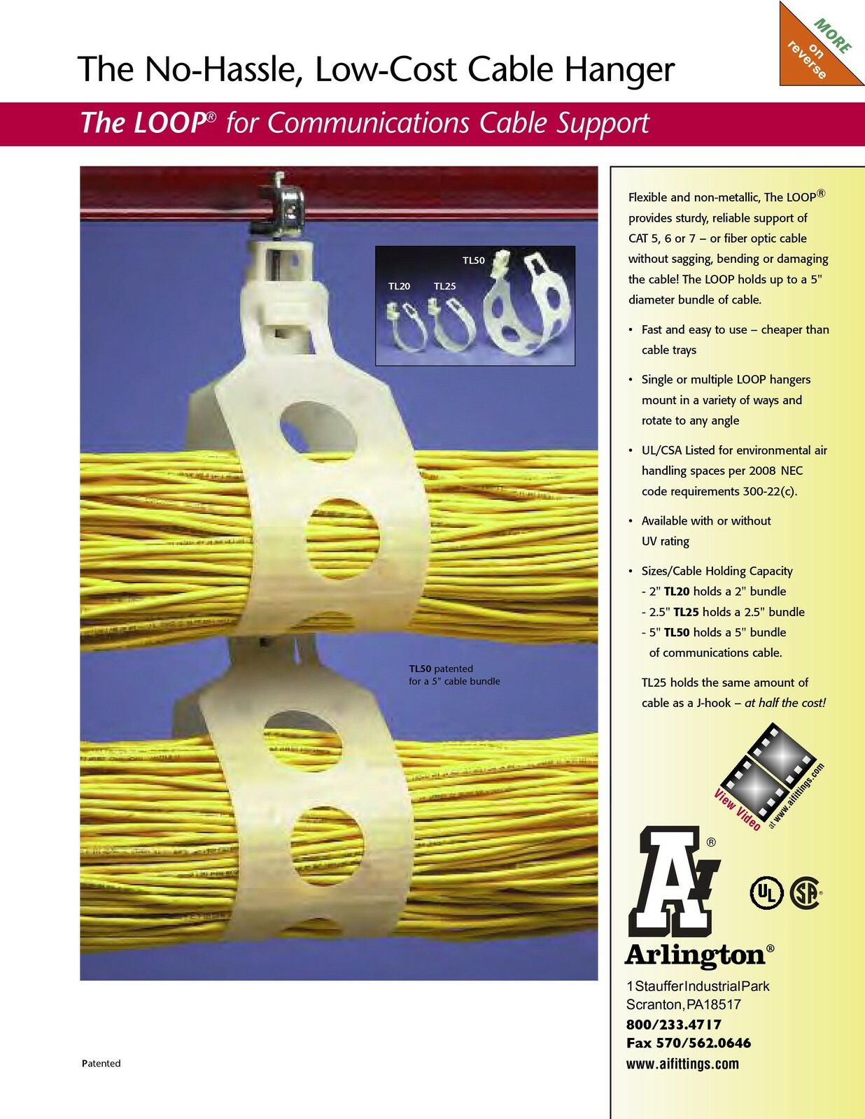 ? The LOOP provides sturdy, reliable support of CAT 5, 6 or 7 ? or fiber optic cable without sagging, bending or damaging the cable!