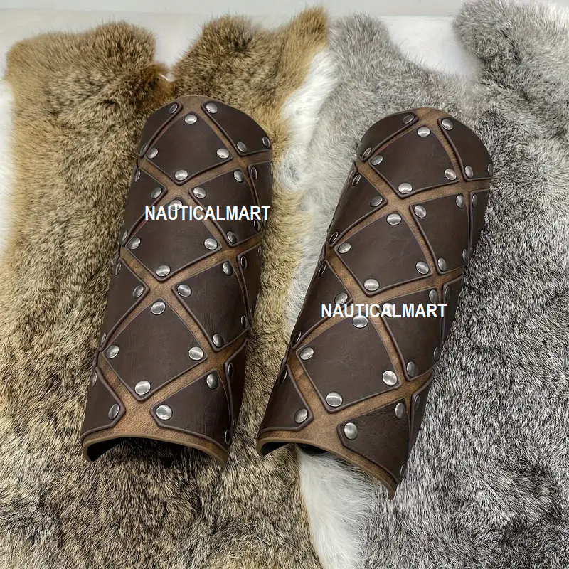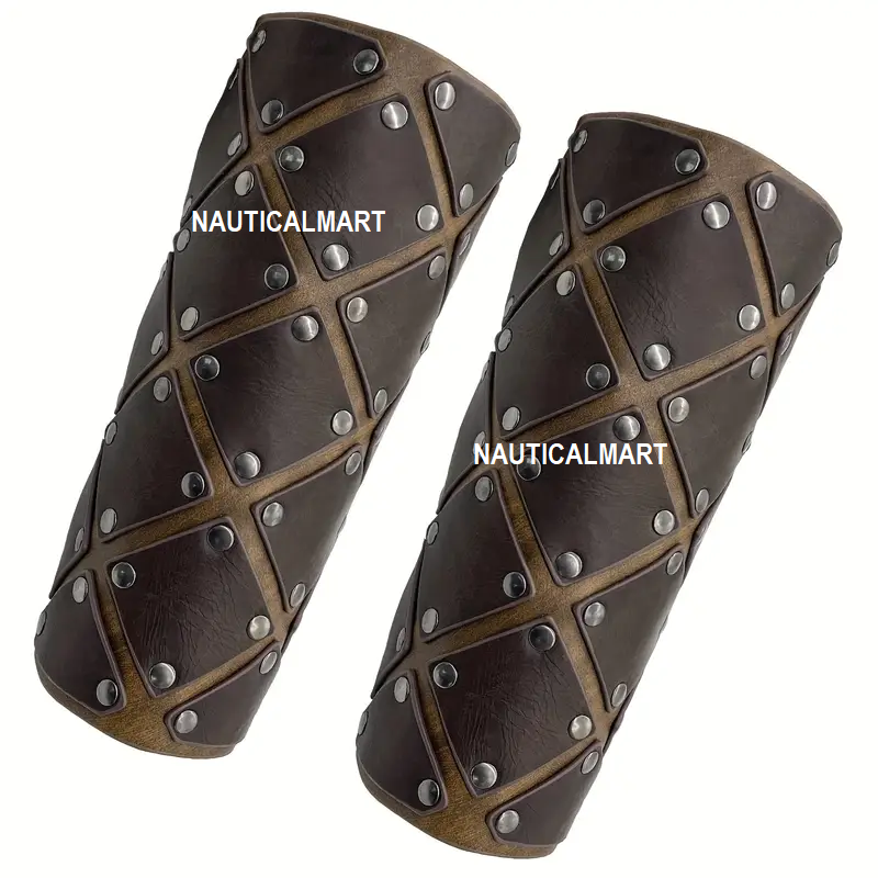Arm Guards, Mercenary Faux Leather Gauntlet, Vintage Renaissance Knight Arm Bracers Brown