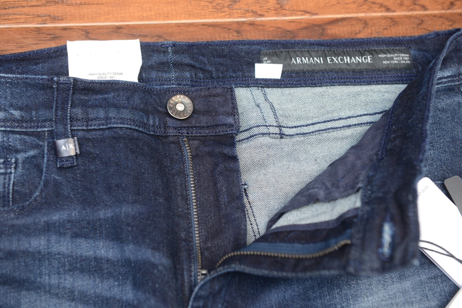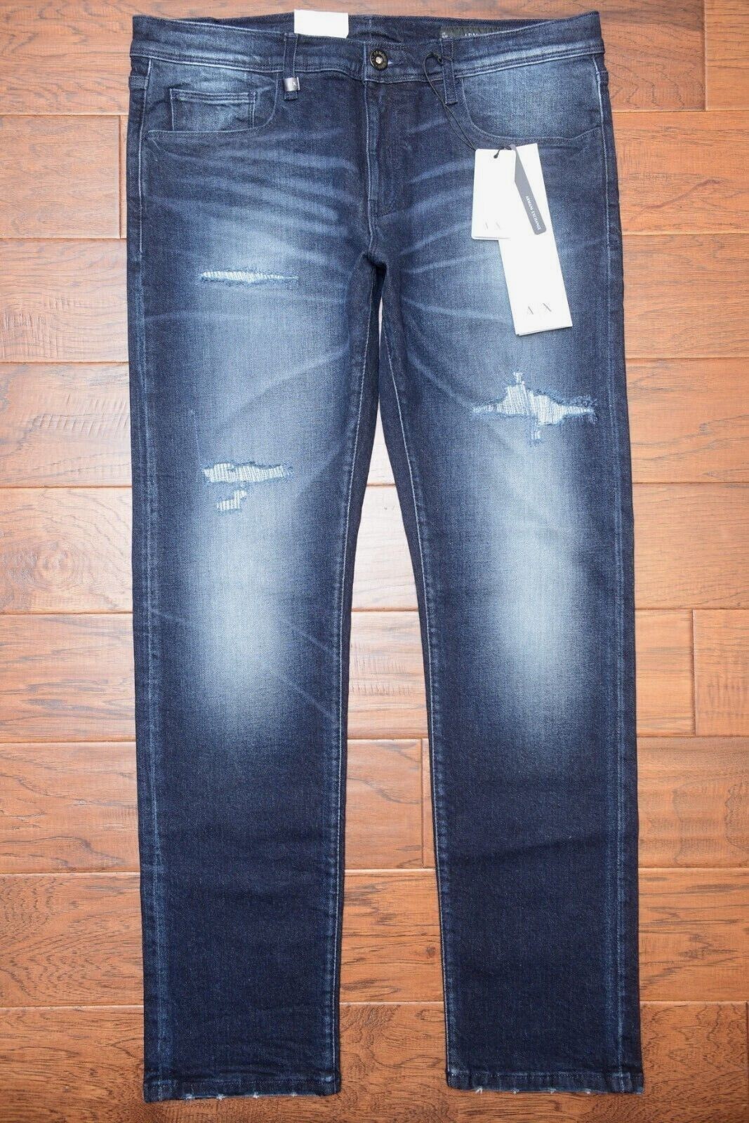 - Armani Exchange $160 A|X J13 Mens Slim Fit Scraped Stretch Cotton Blue Jeans 40R