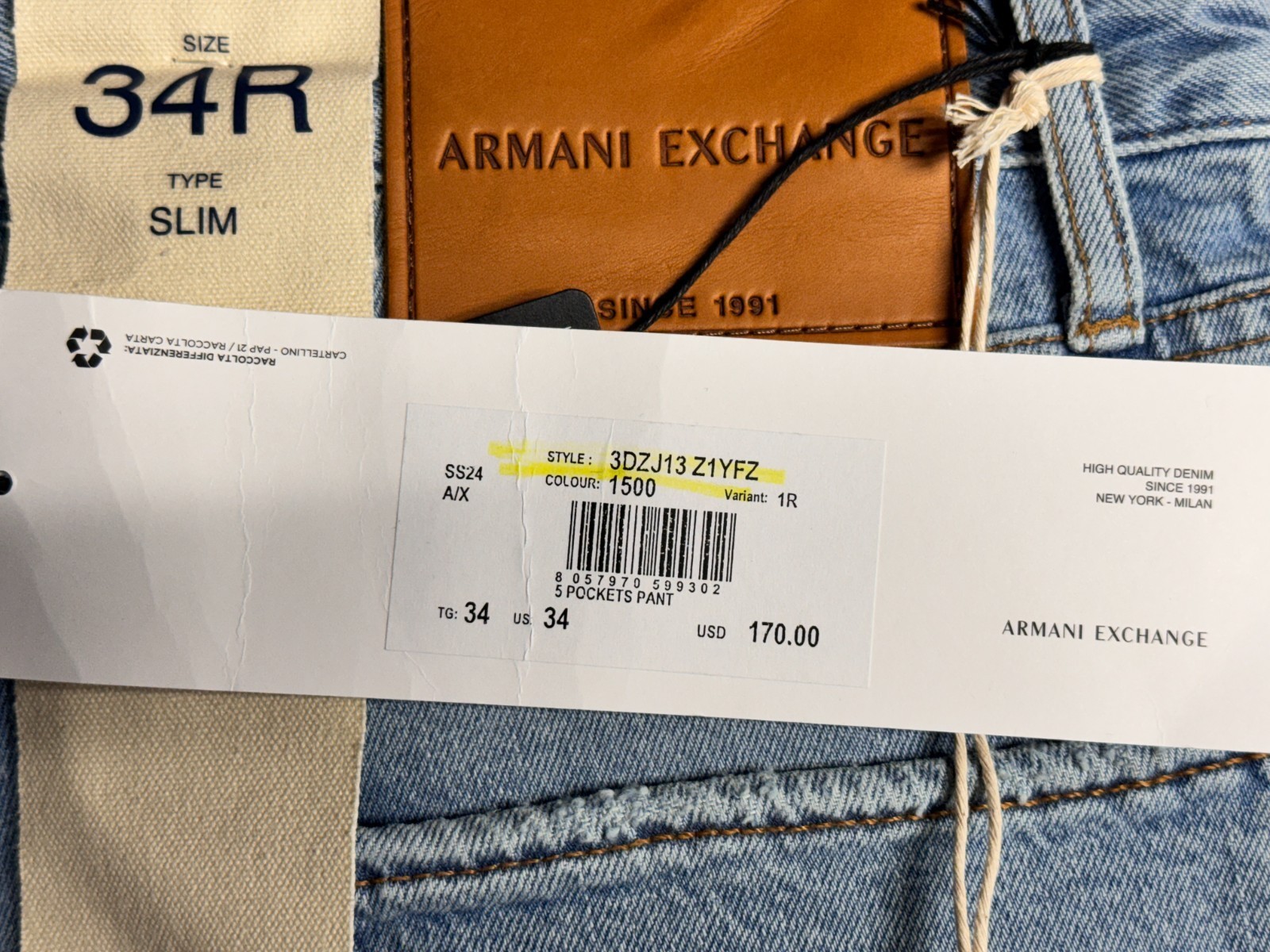 - Armani Exchange $170 A|X J13 Men Slim Fit LT Blue Stretch Cotton Jeans 34S 34X30