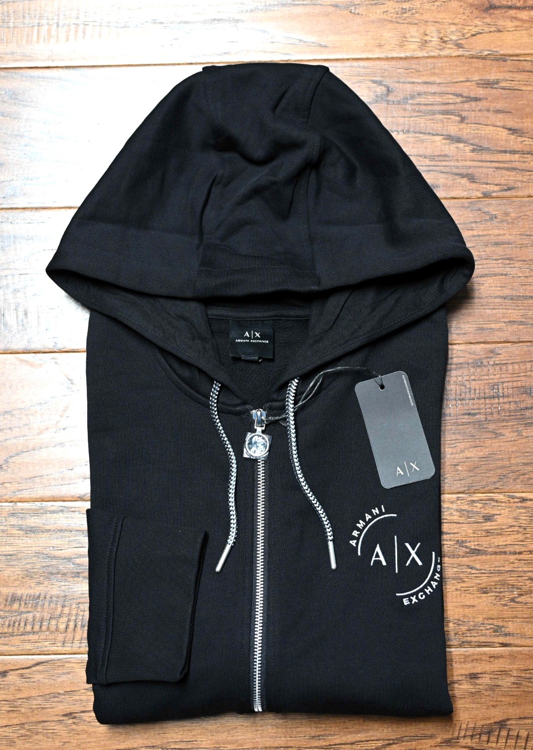 - Armani Exchange A/X $150 Men's Full Zip Black Fleece Cotton Hoodie Jacket 2XL