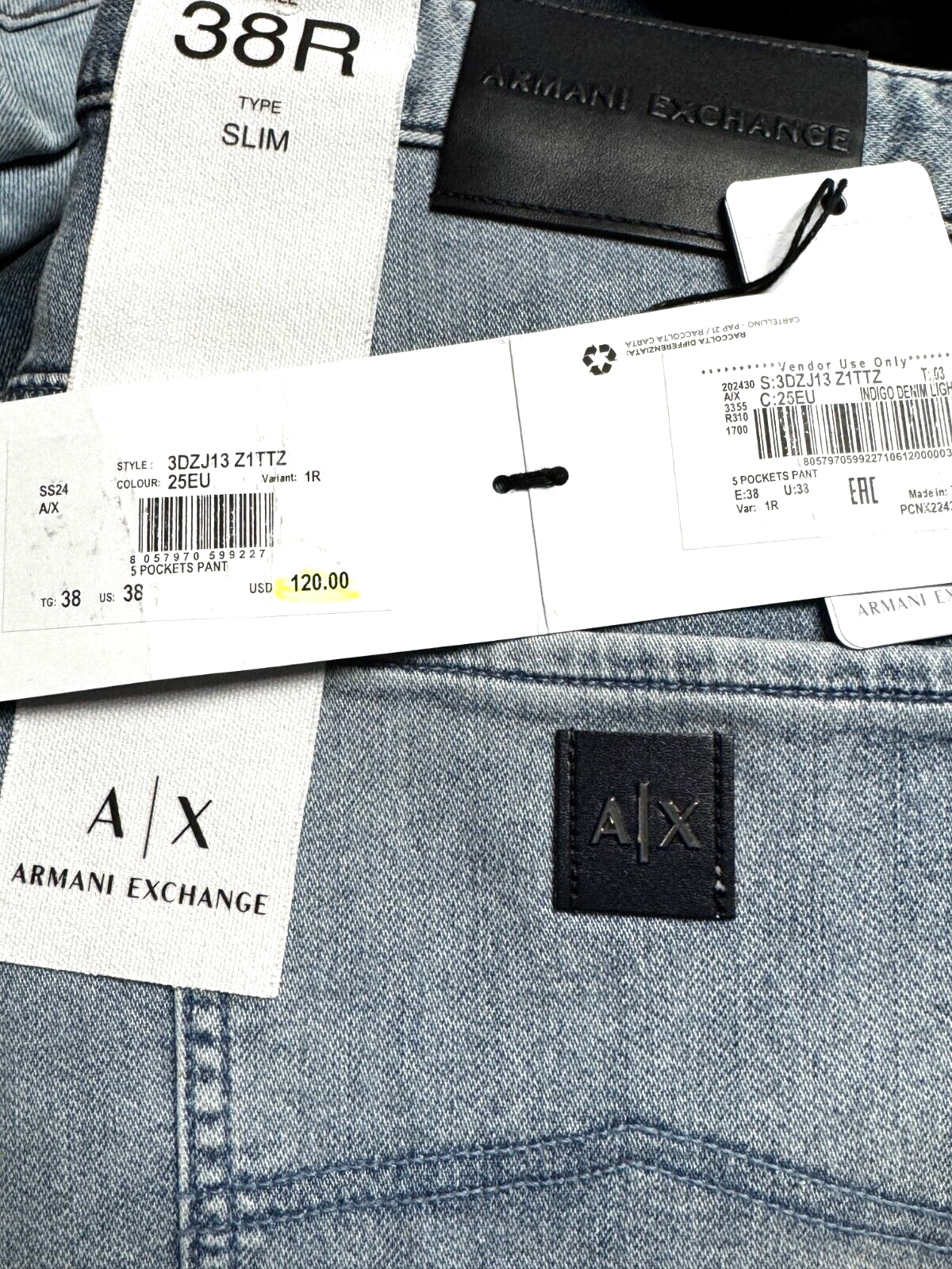 - Armani Exchange A|X J13 Men Slim Fit Light Blue Stretch Cotton Jeans 31S 31X31