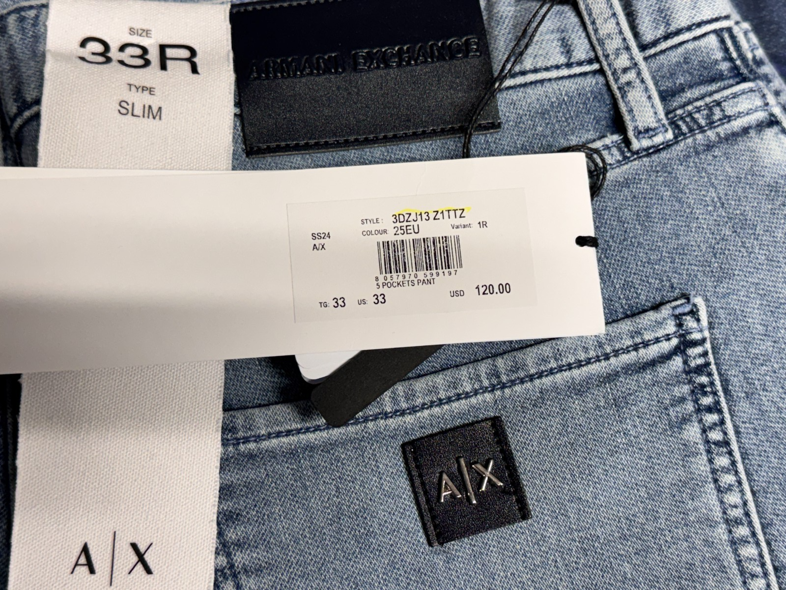 - Armani Exchange A|X J13 Men's Slim Fit LT Blue Stretch Cotton Denim Jeans 32R