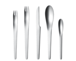 The absolute minimalism and simplicity of this striking stainless steel cutlery set has made it a truly iconic piece of Scandinavian mid century design. Named after its creator Arne Jacobsen, this five piece set was initially launched in 1957 but still looks as contemporary now as then.