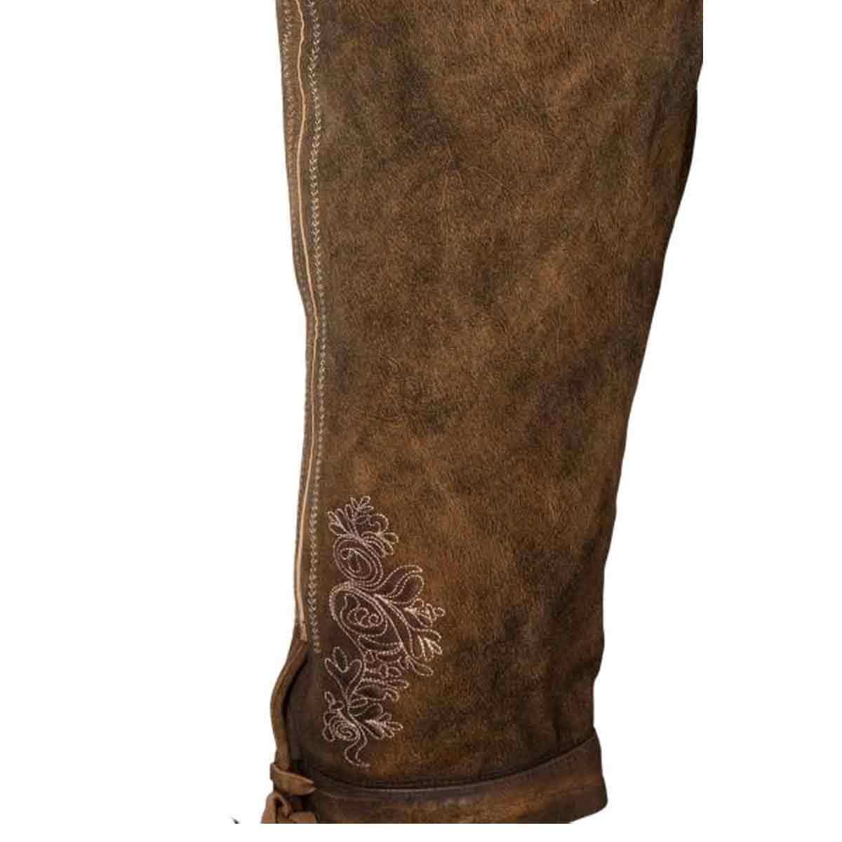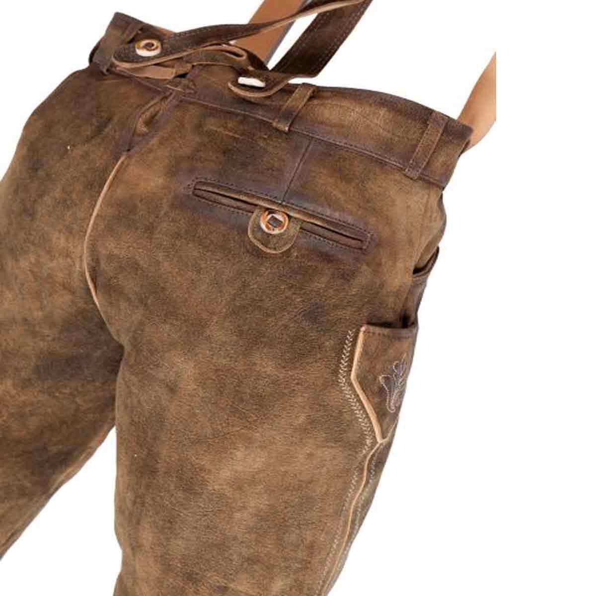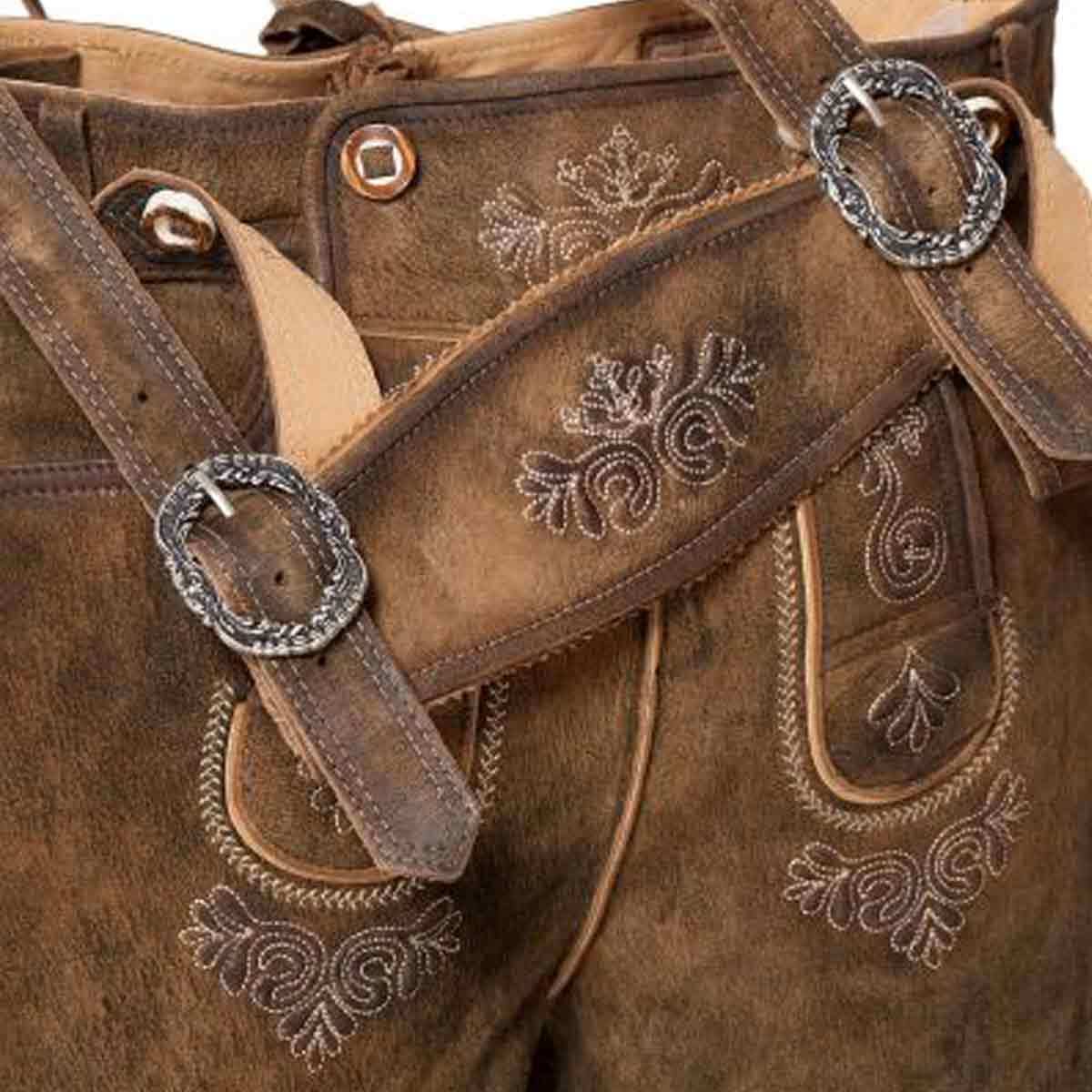 Crafted from premium distressed leather in a rich brown shade, this piece embodies timeless Alpine style with a touch of modern practicality. Perfect for festivals like Oktoberfest, cultural events, and everyday wear, these lederhosen offer exceptional comfort and durability while celebrating authentic craftsmanship.