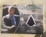 This Arrow Season 1 Wardrobe Card M08 features Colin Salmon as Walter Steele, the Arrow's mentor. The card showcases a costume worn by Salmon during the filming of the show. It is an original, non-sport trading card manufactured by Cryptozoic in 2015. The card is made of card stock and is standard sized. The features of the card include the character's name, the TV show's name, the year of manufacture, and the language of the card. The card is suitable for collectors aged 13+ and is part of the superhero, action, and adventure genres.