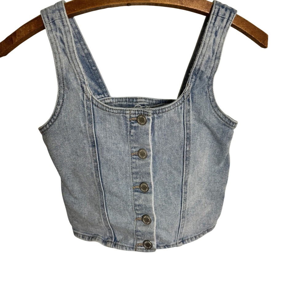 - Art Class Denim Button Front Crop Top Light Wash Sleeveless Tank Top Large