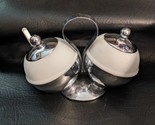 Art Déco Poursuite & Co Chrome Lait Verre Double Condiment Bols Serveur Cuillère