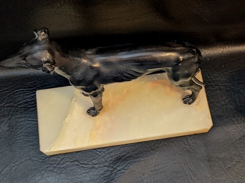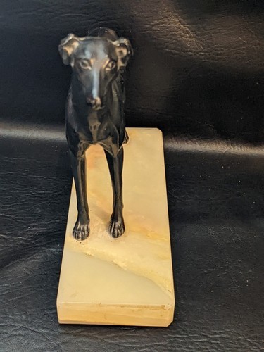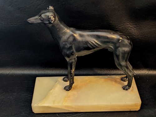 - Art Deco Cast Metal Greyhound Dog Statue Marble Base 8" x 3"