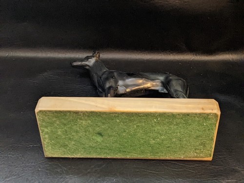 Up for sale is a used Art Deco Cast Metal Greyhound Dog Statue Marble Base 8" x 3".