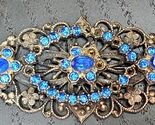 Art Deco Czech Glass Brooch Pin Cobalt Blue Glass Open Work Silver Tone Filigree