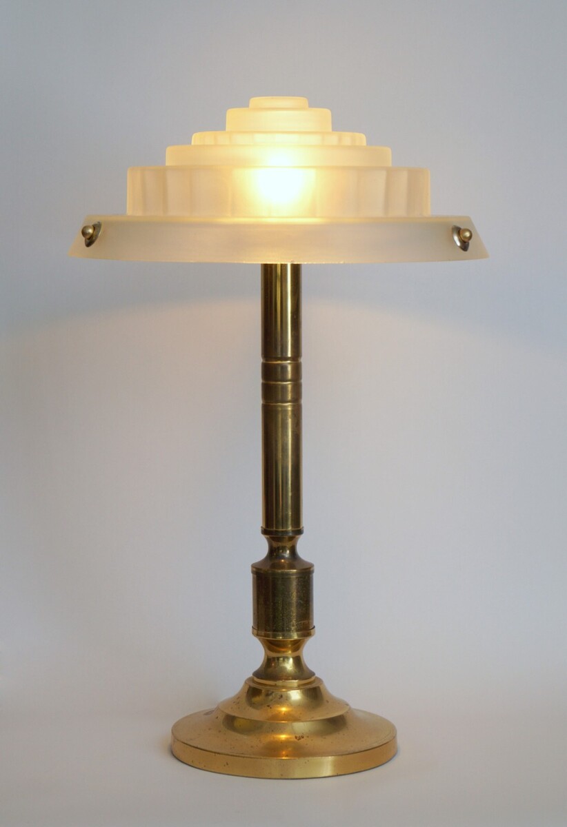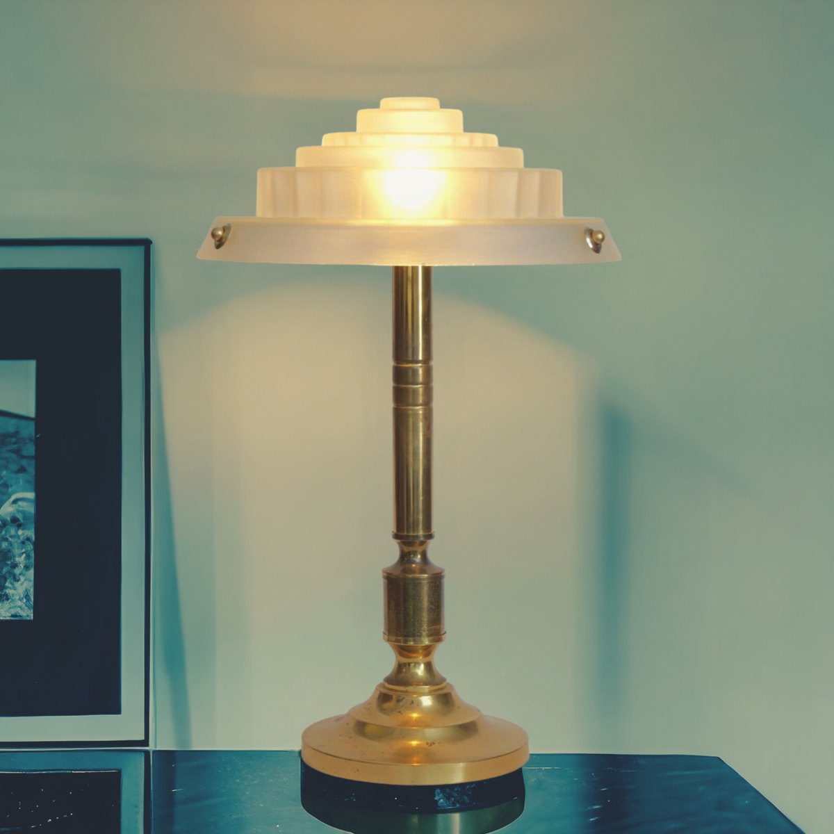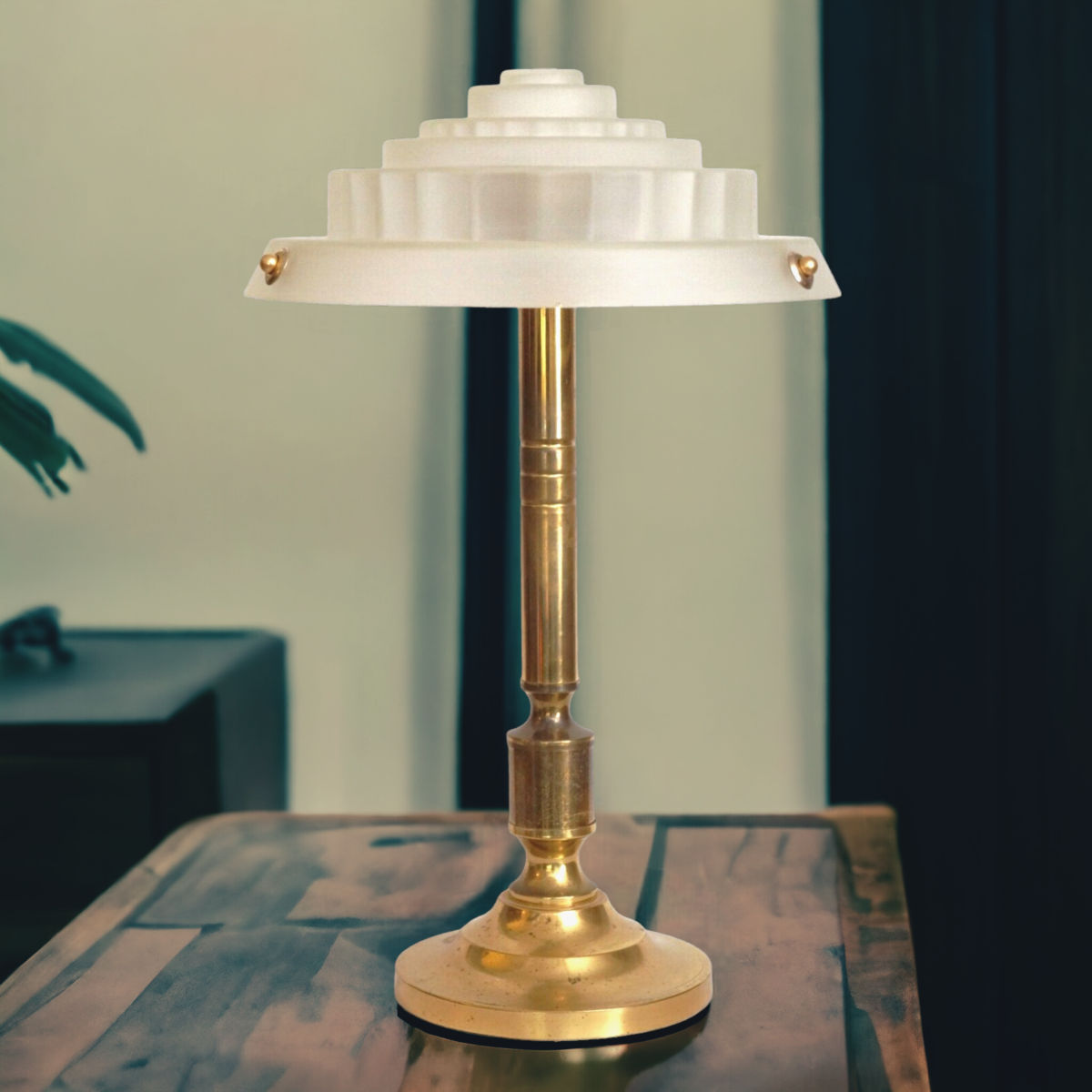 Single piece Art Deco desk lamp "Golden Stairs" unique brass lamp