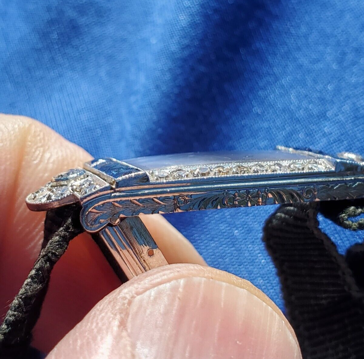 Exciting 1920s art deco diamond platinum roaring 20s watch.