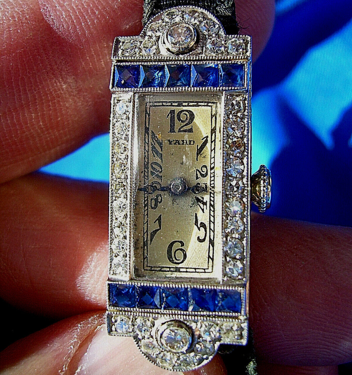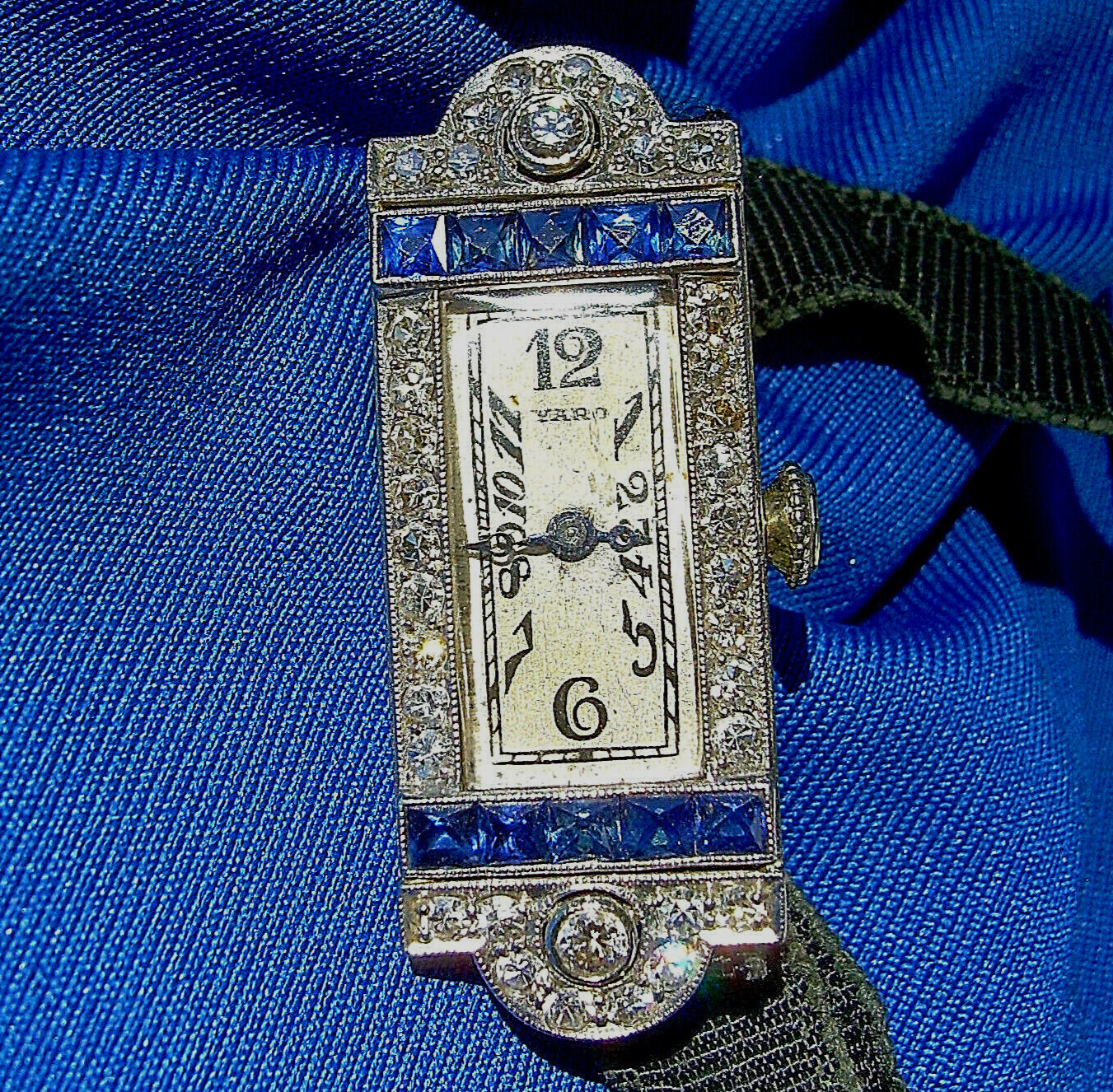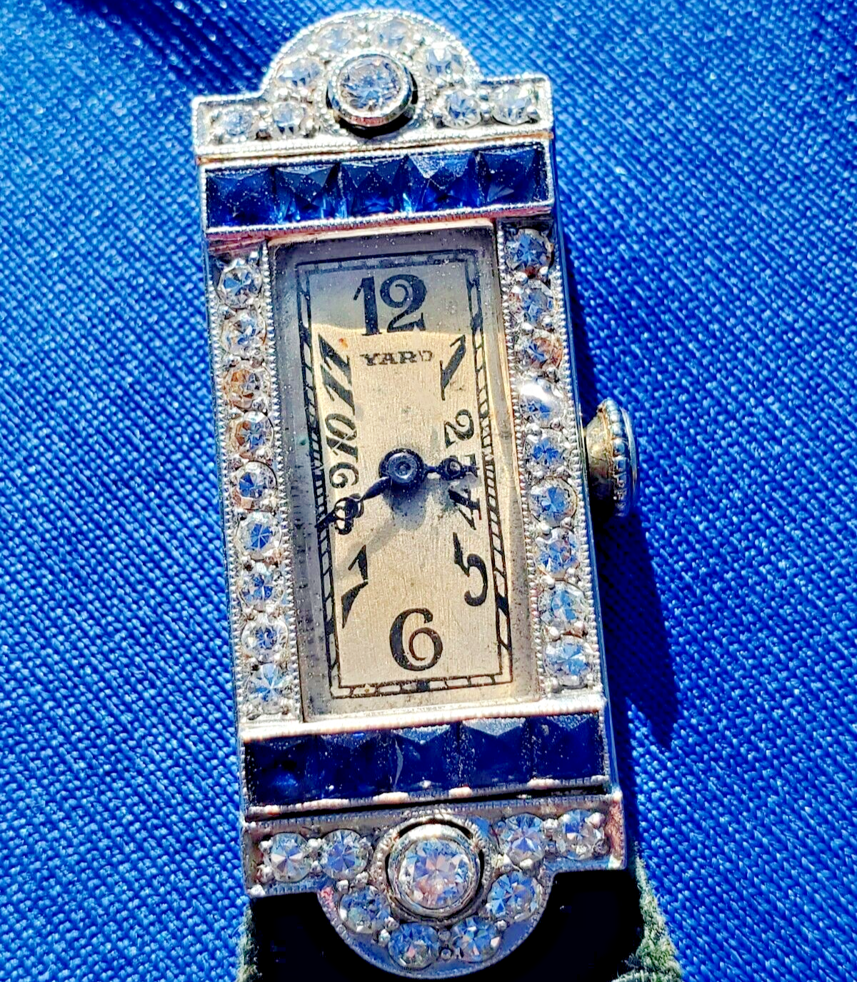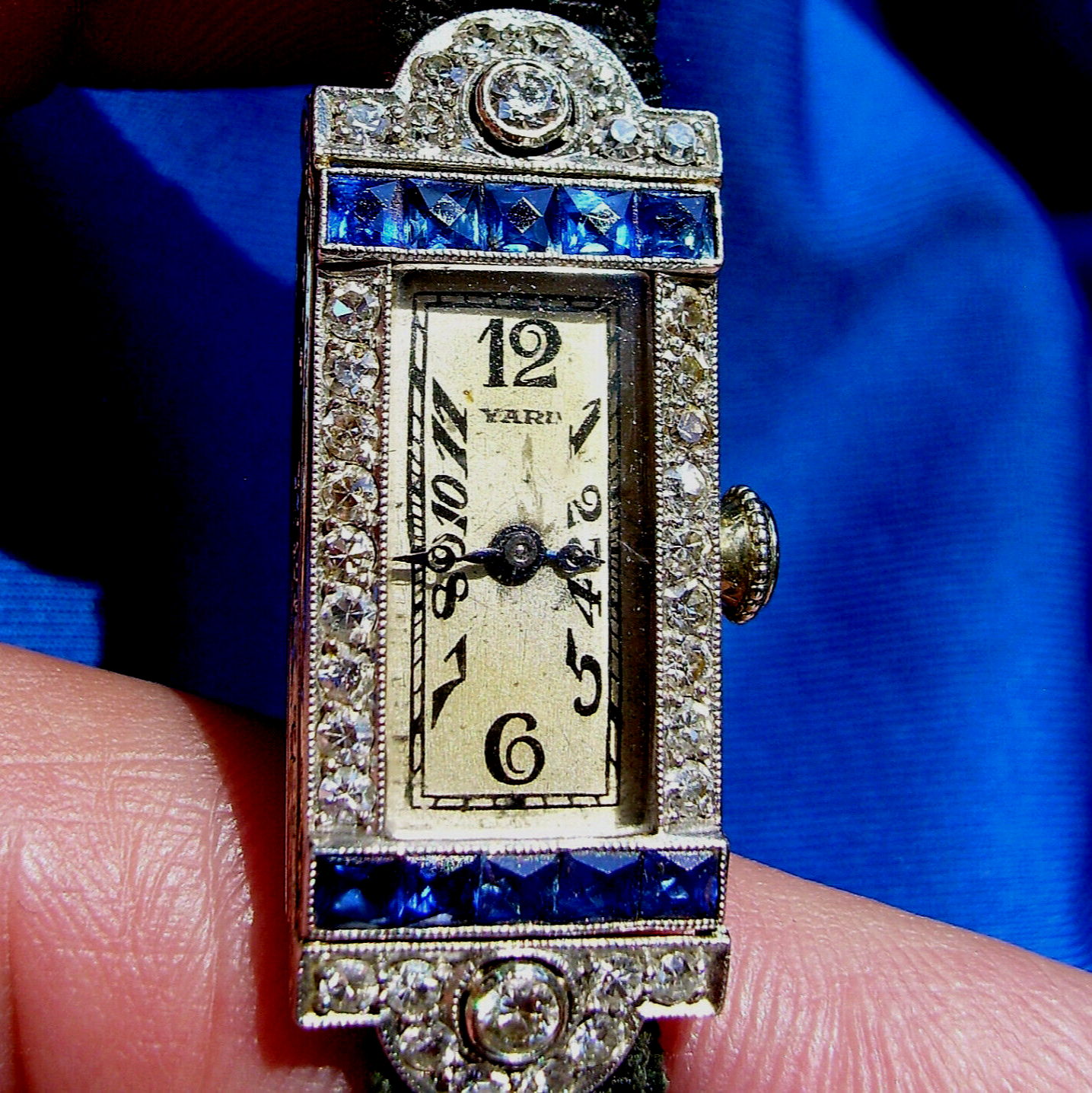 - Art Deco Raymond Yard Antique Diamond Sapphire Platinum Gatby Flapper era Watch