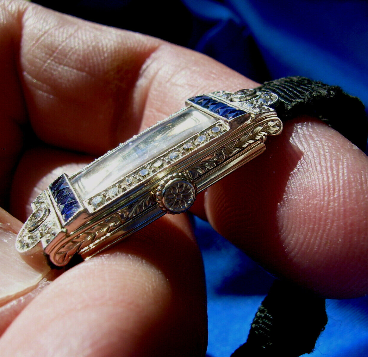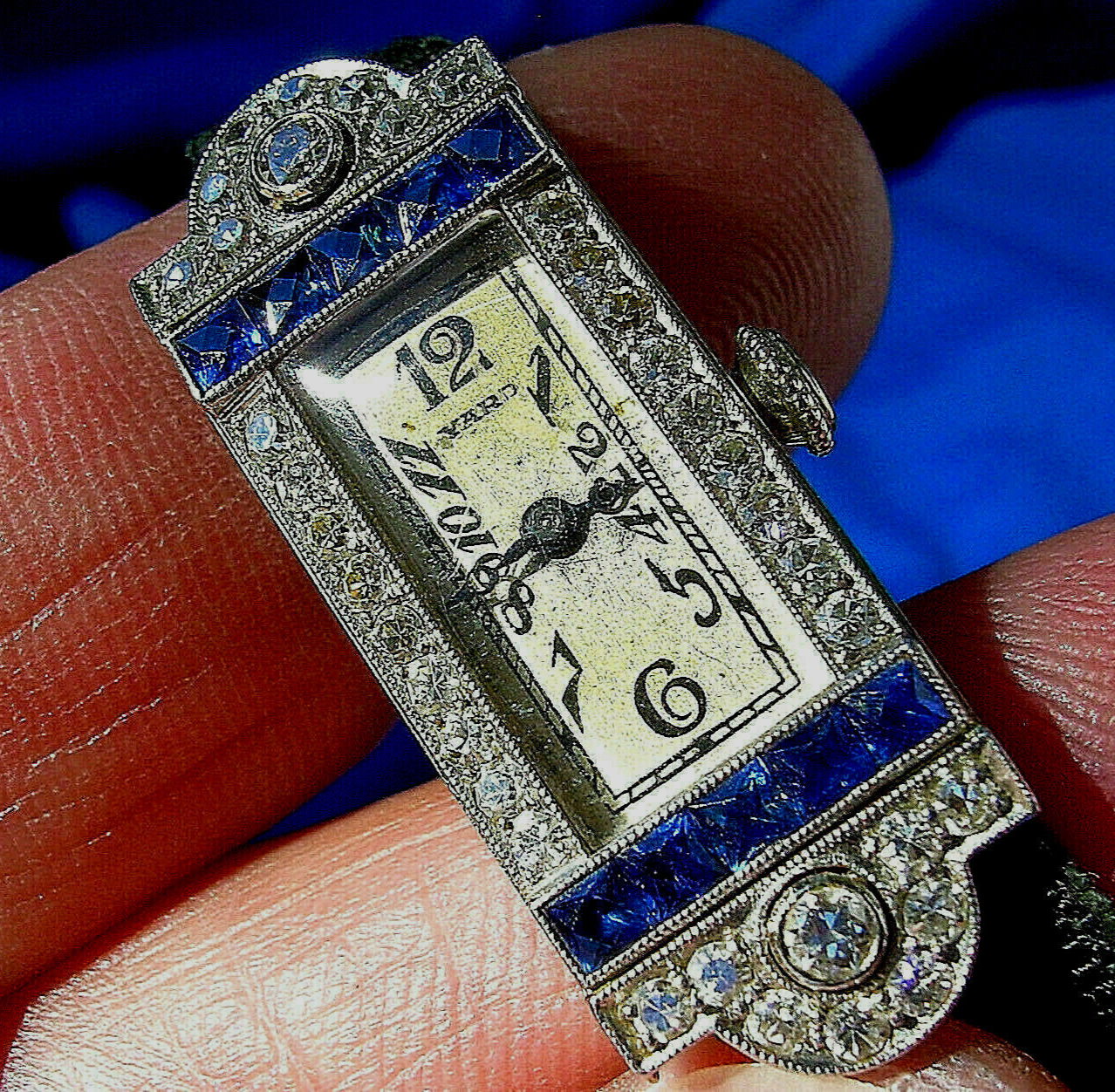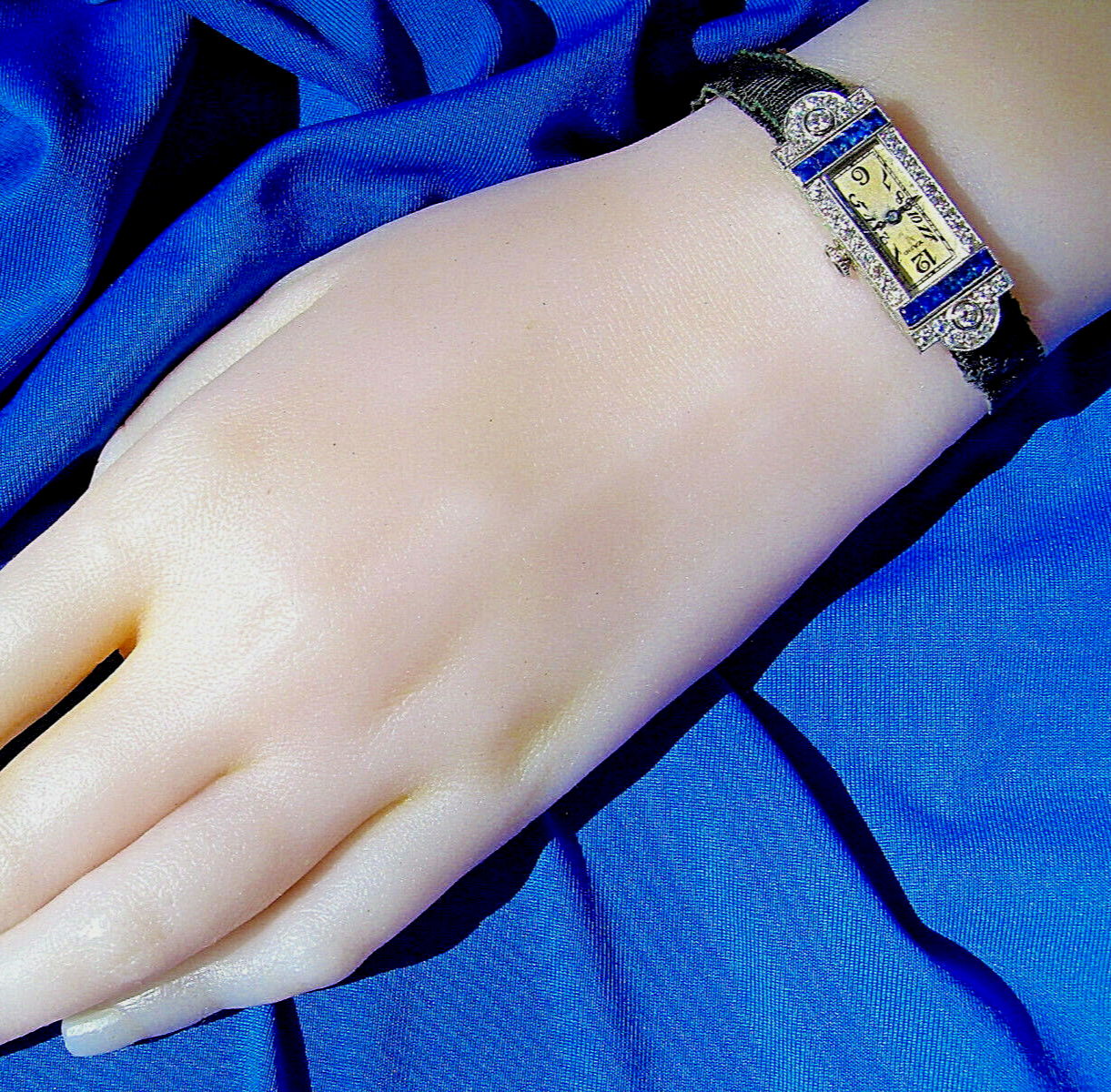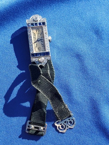 - Art Deco Raymond Yard Antique Diamond Sapphire Platinum Gatby Flapper era Watch