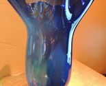 - Art Glass 10" Vase Blue Hand Made Blown signed Sandy/ Sandra Thomas