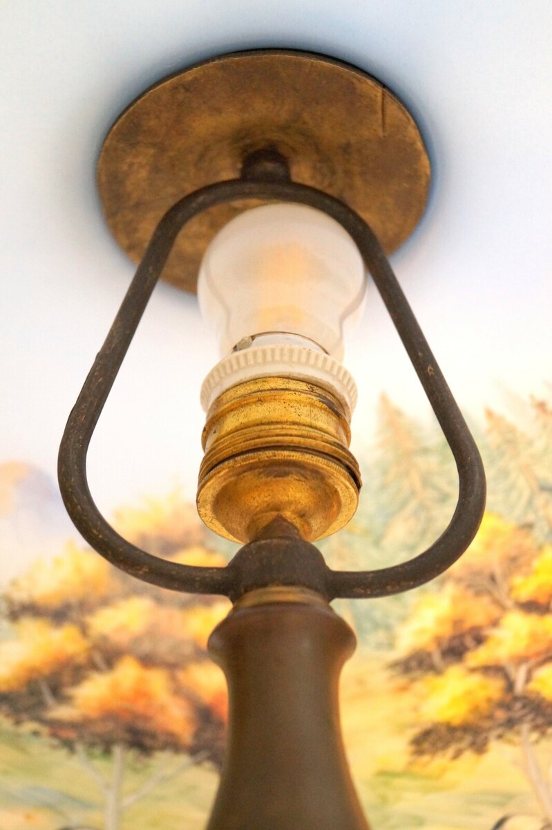 Art Nouveau Country House Lamp Table Lamp "BAVARIA" Bronze Unique Lamp The description of this item has been automatically translated. If you have any questions, please feel free to contact us. Guaranteed collector unique. Large Art Nouveau bronze table lamp "BAVARIA". Very heavy bronze gear with fantastic patina. Hand painted (side side!) Opal glass, fantastic lighting effect. Overall, the lamp shows subtle signs of age and wear. Total height approx. 63 cm, umbrella diameter approx. 40 cm. Completely renewed electrical installation. PVC supply line with cord intermediate switch. Antique E 27 brass version with porcelain clocks, up to max. 60 watts - we only recommend using LED lamps. Sale without decoration and lamp! Shipping within Germany free of charge! Please note: All of our luminaires were brought into circulation well before 2005, are in their original condition and therefore do not fall under the electrical and electronics device law (Weee guideline of the EU). Invoice is subject to differential taxation according to § 25a UStG - VAT. is not reported. Important: We recommend using only LED lamps (filament bul!) For each of our lights. In addition to that of up to 12 times higher efficiency, the very low heat development of an LED bulb ensures the lifespan of the electrical system and the precious original glasses of its lamp. LED lamps available everywhere or here . Please also note: It is a used and/or ancient object that, despite processing and cleaning, has clear signs of age and use. If you are looking for a "new" and high-gloss lamp in the hardware store style, you are clearly wrong here! Thank you for your understanding. Our luminaires are all unique and stand up to the same appearance of the same appearance of the famous "brass lamps from the capital", where ultimately every lamp is available a thousand times. You can only get individuality and real uniqueness from us! A lamp from our manufactory guarantees you elegant appearance, quality and uniqueness! You can find more unique lights in our shop: Important: We recommend using only LED lamps (filament bul!) For each of our lights. In addition to that of up to 12 times higher efficiency, the very low heat development of an LED bulb ensures the lifespan of the electrical system and the precious original glasses of its lamp. LED lamps available everywhere or here . Please also note: It is a used and/or ancient object that, despite processing and cleaning, has clear signs of age and use. If you are looking for a "new" and high-gloss lamp in the hardware store style, you are clearly wrong here! Thank you for your understanding. Our luminaires are all unique and stand up to the same appearance of the same appearance of the famous "brass lamps from the capital", where ultimately every lamp is available a thousand times. You can only