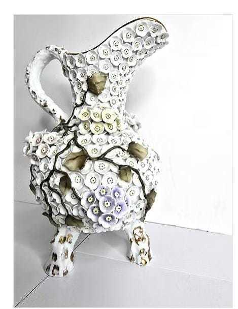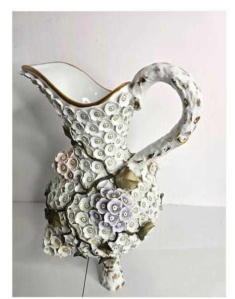 Art Pitcher Signed No. 23/239 "Rhoo" Very Elaborate Handcrafted 18k Gold Trim - VERY RARE in Excellent Condition, See Photos - Measures 11 1/2" H x 10" W ... Includes FREE SHIPPING. Note the projected collectibles, vintage, antiques, and memorabilia, U.S. market is poised for substantial growth on-average 6.5% Compound Annual Growth Rate (CAGR) to reach $280 Billion revenue by 2033.