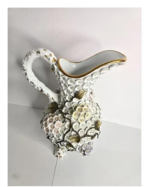 Art Pitcher Elaborate Handcrafted 18k Gold Trim - Very Rare