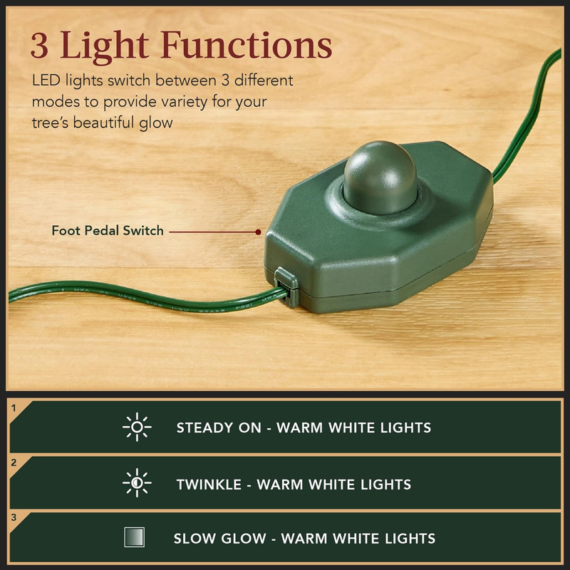 TWINKLING LIGHT FUNCTIONS: Illuminate your holidays with 3 captivating light modes, including the viral twinkle effect, lighting up your home with holiday magic; Number of lights (4.5ft/6ft/7.5ft/9ft/12ft): 200/250/550/900/1,300/1,800