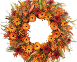 - Artificial Fall Wreath 22 Inch Autumn Wreaths for Front Door Orange Daisy Wreath