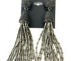 Artisan Beaded Chandelier Clip-On Earrings, Black, New