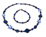 Artisan Made Beaded Necklace & Matching Bracelet Blue/Burgundy/White