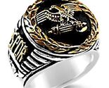 Hand Crafted Signet ring ...*Gold detailed 3-D r sculpted Roman eagle atop fasces, framed in laurel wreath .....Aprox. Dimensions,Outside frame: (0.86"/22.0mm)across....Sterling silver bottom,2 SPQR sides make this a one of a kind ring designs....Sits flat on finger No concave parts...has feel of Collegiate ring!!!!!...,worked silver shank....Vintage Antique finish,........state your finger size(9-14),
