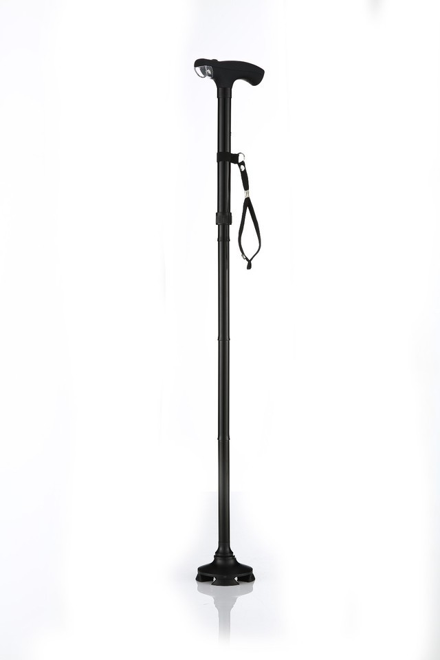 This cane has it all. Foldable so you can store it easily. Adjustable for different heights. 4 rubber feet under the swivel leg to allow the cane to stand on its own when you need to set it aside. A bright light so you can see going down stairs or at night. A wrist strap so you don't lose it when walking.