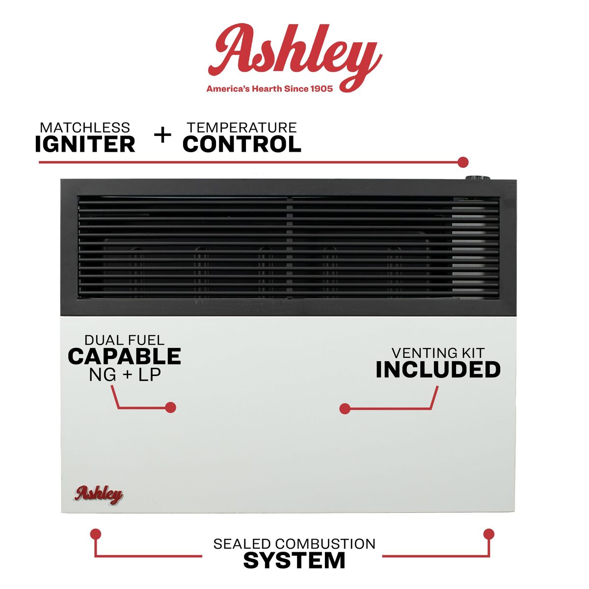 Ashley Wall Heater, Dual Fuel, 17k Direct Vent |