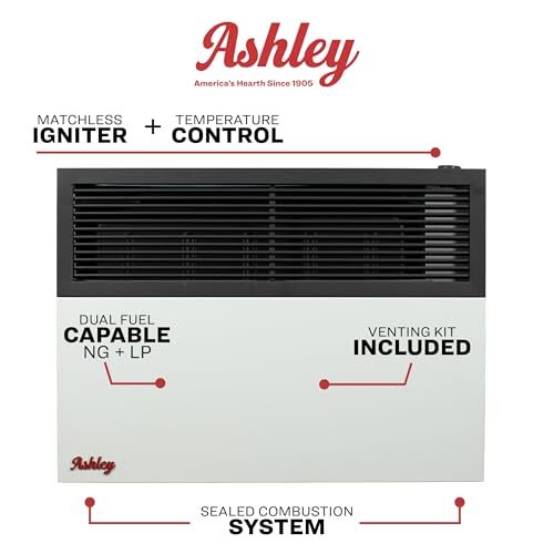 - Ashley Wall Heater, Dual Fuel, 17k Direct Vent