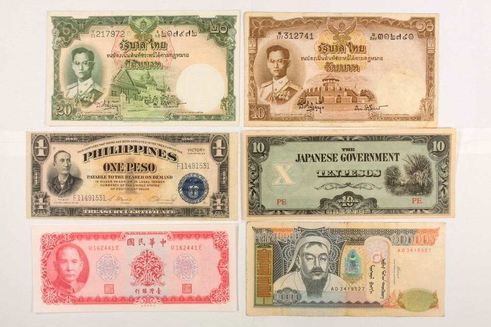 Asia notes. Japan and Japanese occupation of Burma, Malaysia, Netherlands Indies and the Philippines during World War 2. 17 notes in lot.