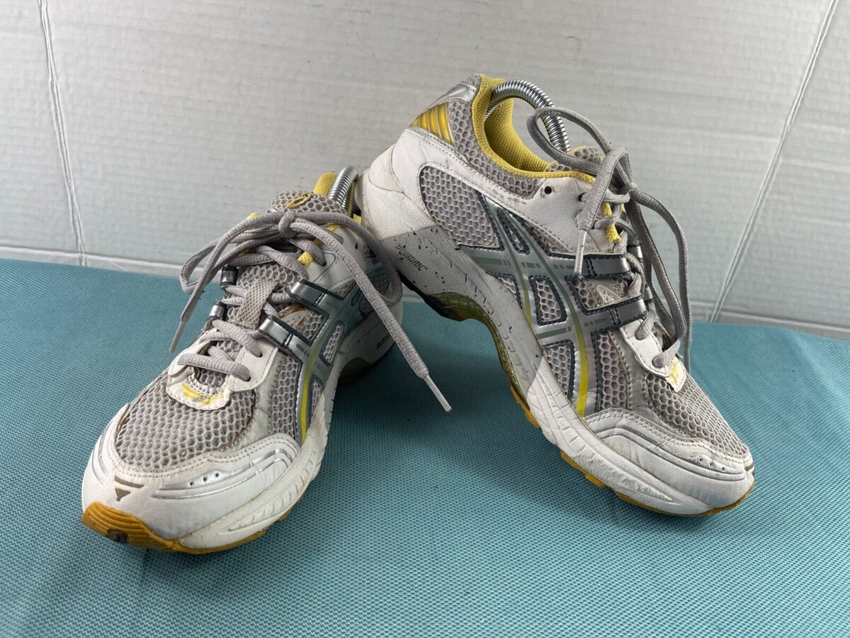 - Asics Sneakers Women 8.5M Gel GT 2100 Running Shoes Silver White Yellow Trainers