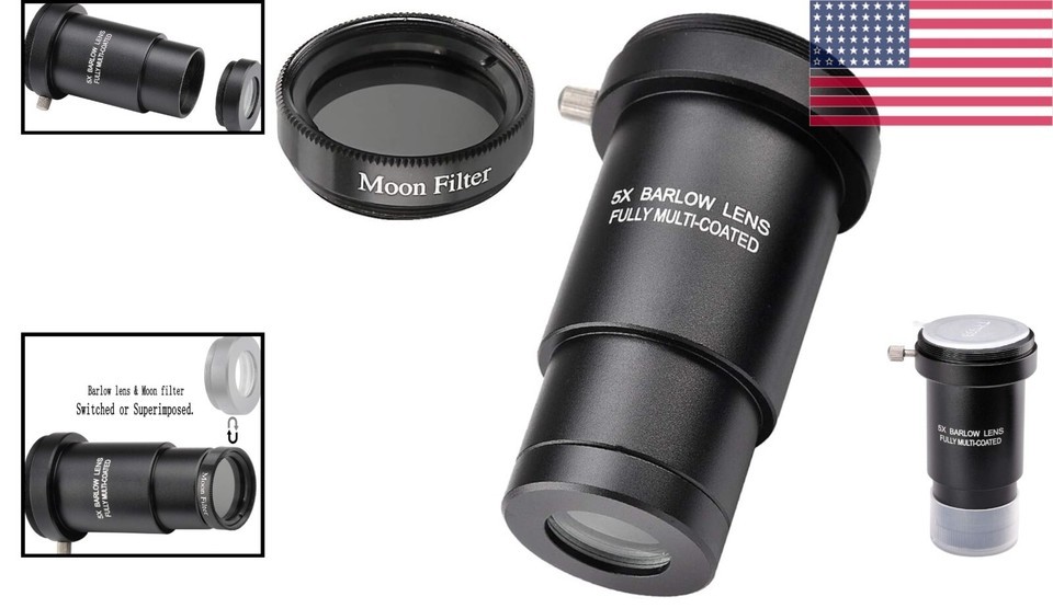 - Astronomical 5X Barlow Lens & Moon Filter Kit - Universal T-Ring Compatibility
