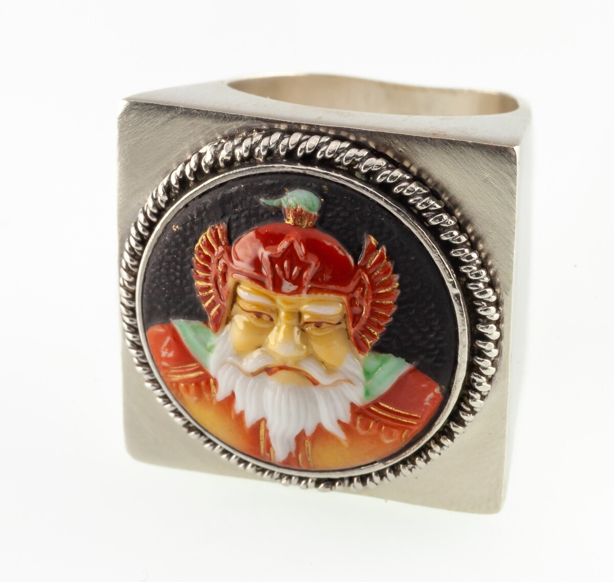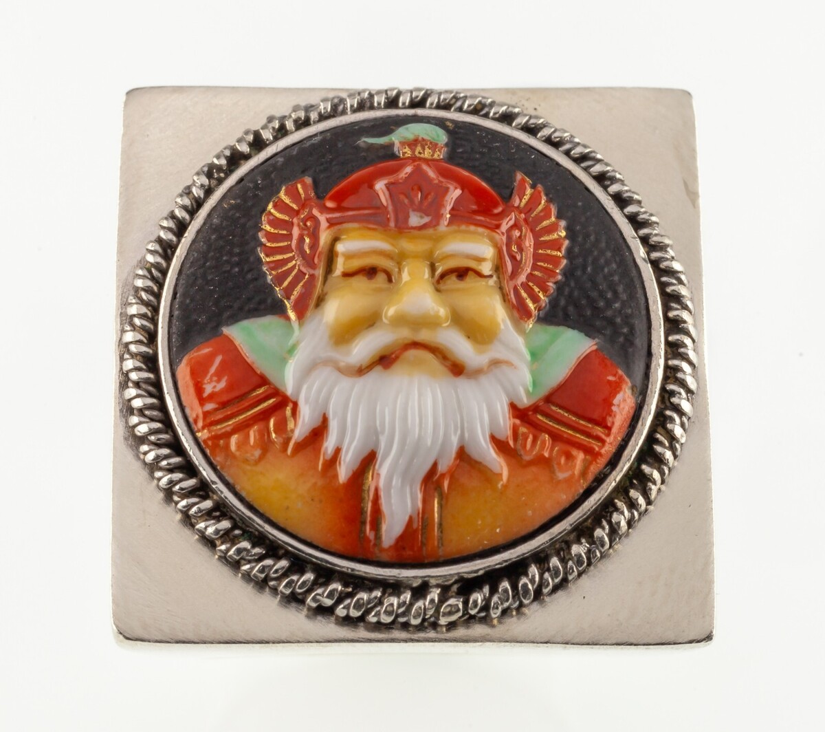 Zeigt Portrat eines chinesischen Kriegers mit Silberseilblende