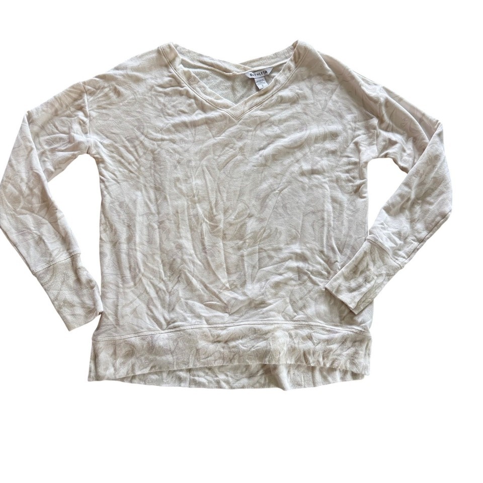 - Athleta Beige V-Neck Lightweight Long-Sleeve Sweatshirt Womens Size Small Organi