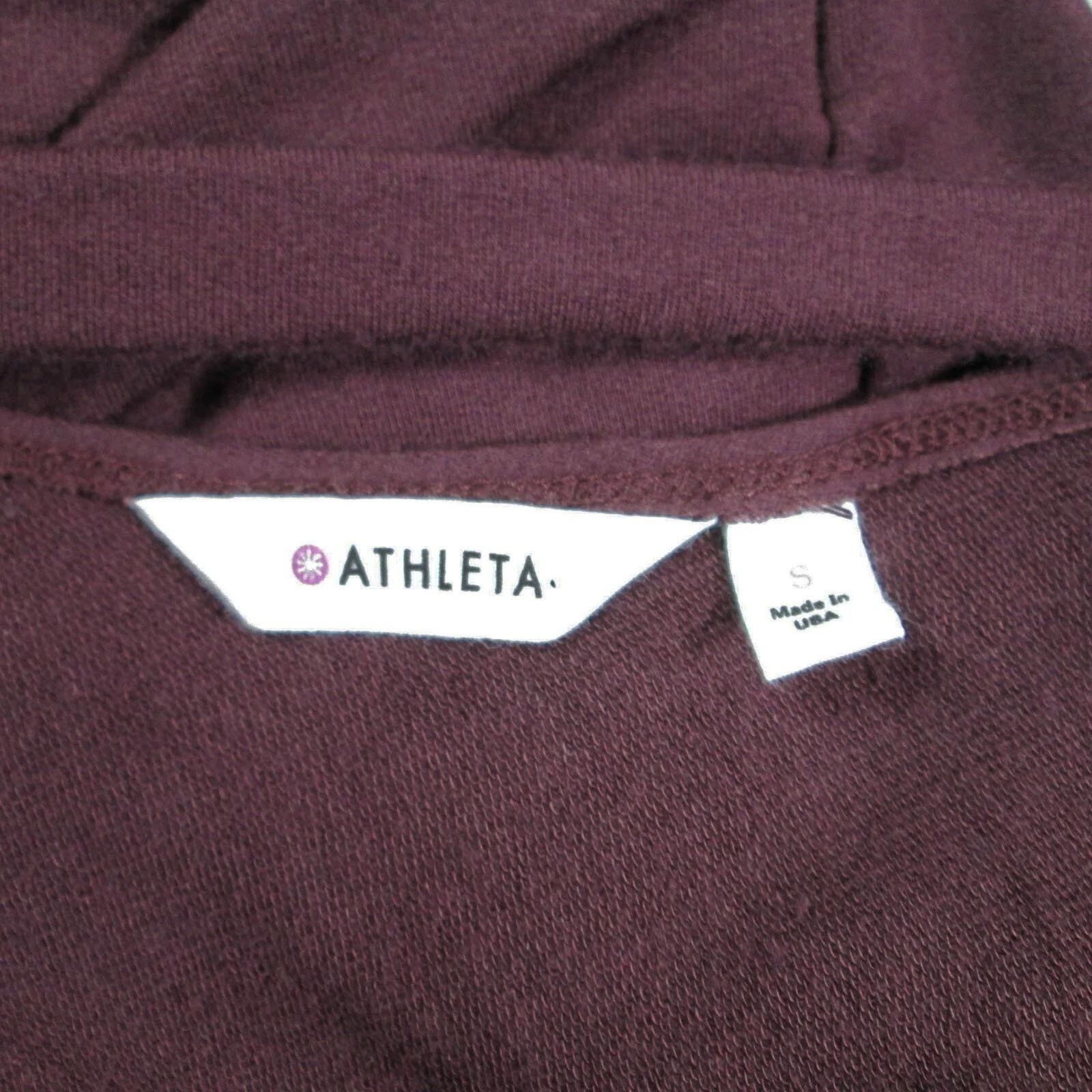 - Athleta S Long Sleeve VBack Backtrack Sweatshirt Top Dark Purple Burgundy Terry