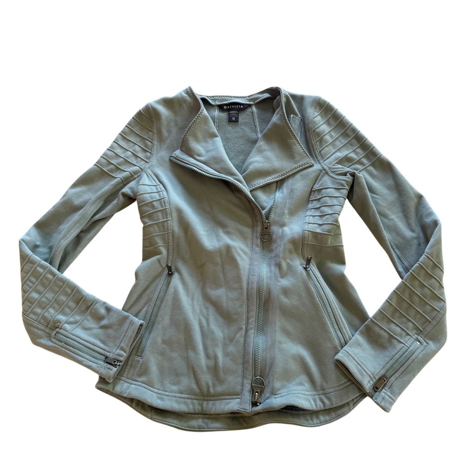 - Athleta XS Moto Jacket Green Womens Full-Zip Stretch Fleece Lined