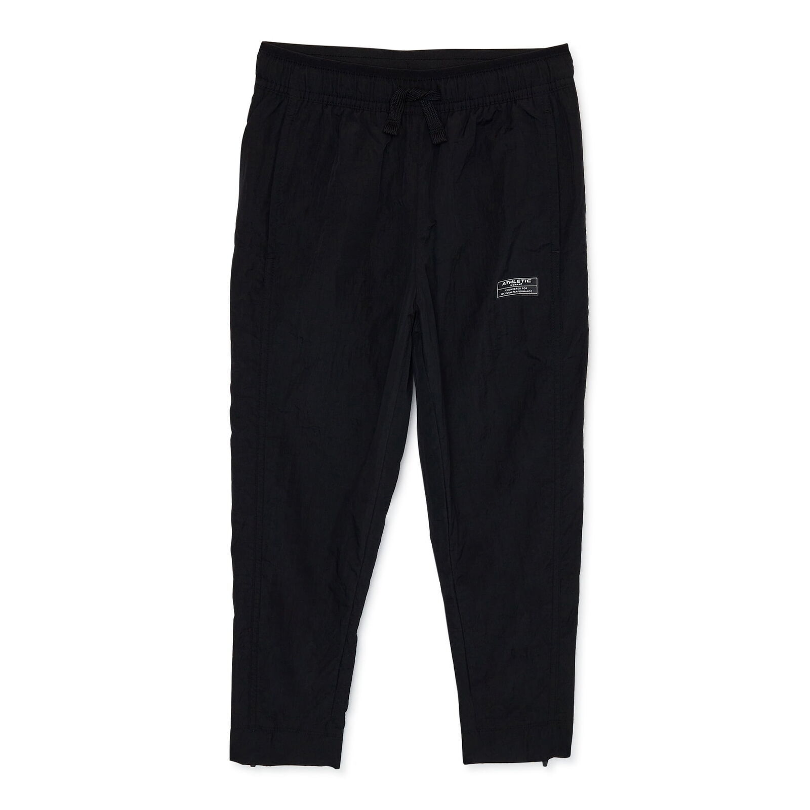 The Wear Now Woven Joggers from Athletic Works are made of a lightweight yet durable fabric that can stand up to any adventure. Made with an elasticated waistband for comfort and an adjustable drawcord to perfect his fit. Not only are there two hand pockets, but an additional zippered pocket on the back to keep his items safe while he?s on the go. Ankle zippers make it easy to take these on and off. These joggers are fully lined with a mesh fabric for a little extra warmth on cooler days.