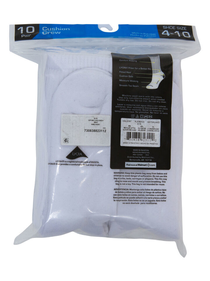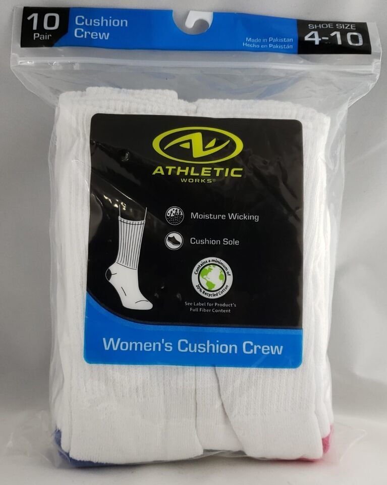 - Athletic Works Women's Crew Sock, 10 Pack White Size 4-10