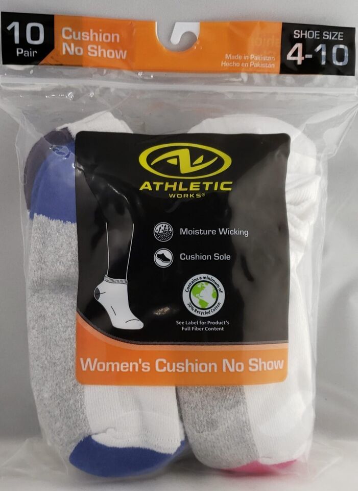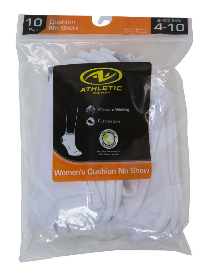 - Athletic Works Women's Half-Cushion Regular No Show Sock, 10 Pairs 4-10