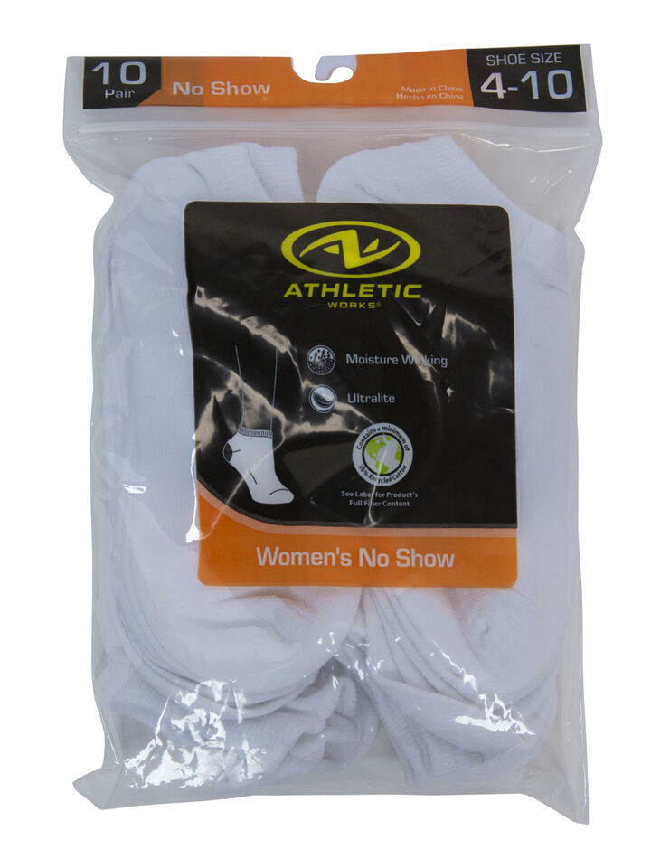 - Athletic Works Women's Non-Cushion No Show Sock, White 10 Pairs Size 4-10