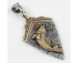 Atlantis Charm Sterling Silver Pendant w/Red Garnet & Golden Fish Greek Pattern