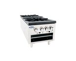 New Gas Double Burner Stock Pot Stove, is a commercial equipment unit, designed to provide reliable performance for many years. With this essential stockpot stove you will cook delicious soups, sides and entrees each and every time you wish! New full width model has removable stainless steel drip pan for easy cleanup. With the total power output of 160,000 BTU?s, it ensures full-size performance. The burners are equipped with four continuous pilots strategically placed for instant ignition of each section. Thanks to the durable, corrosion-resistant stainless steel construction, the unit is built to last and brings convenience to your kitchen.