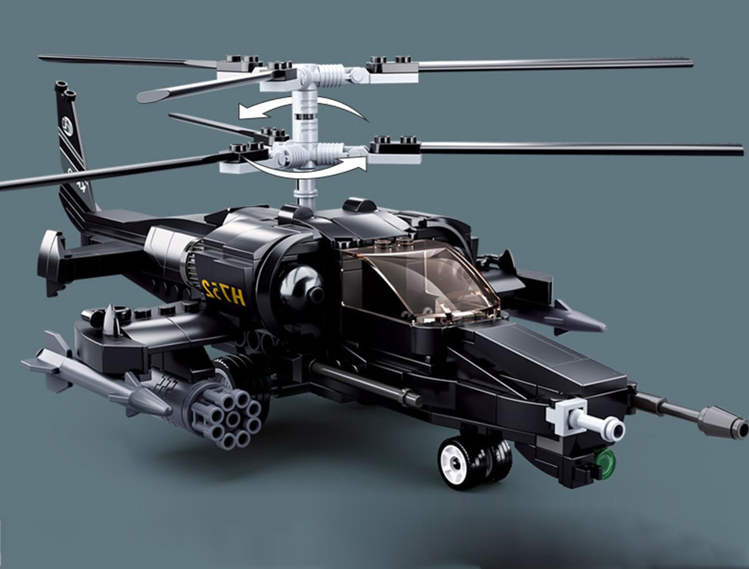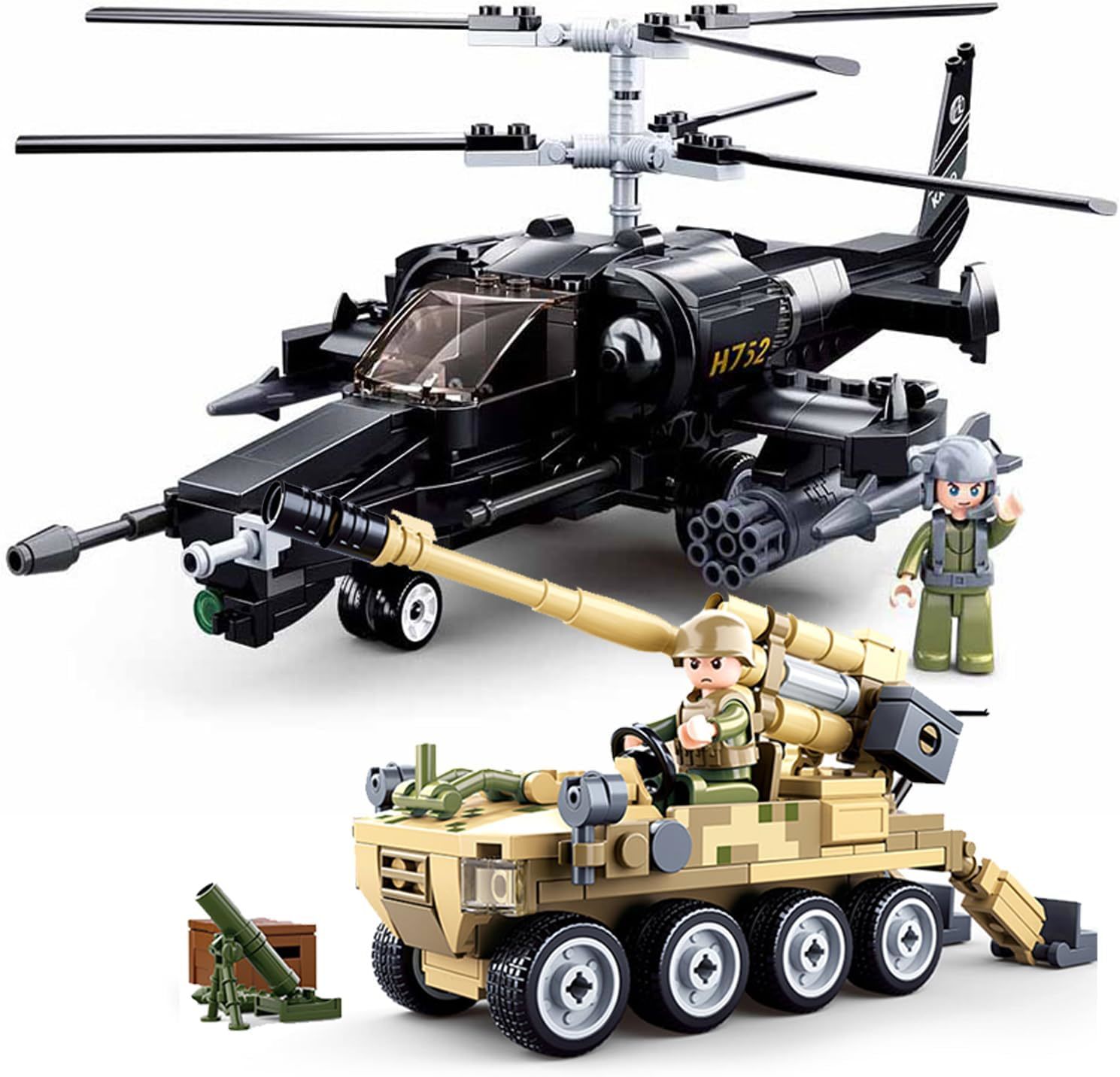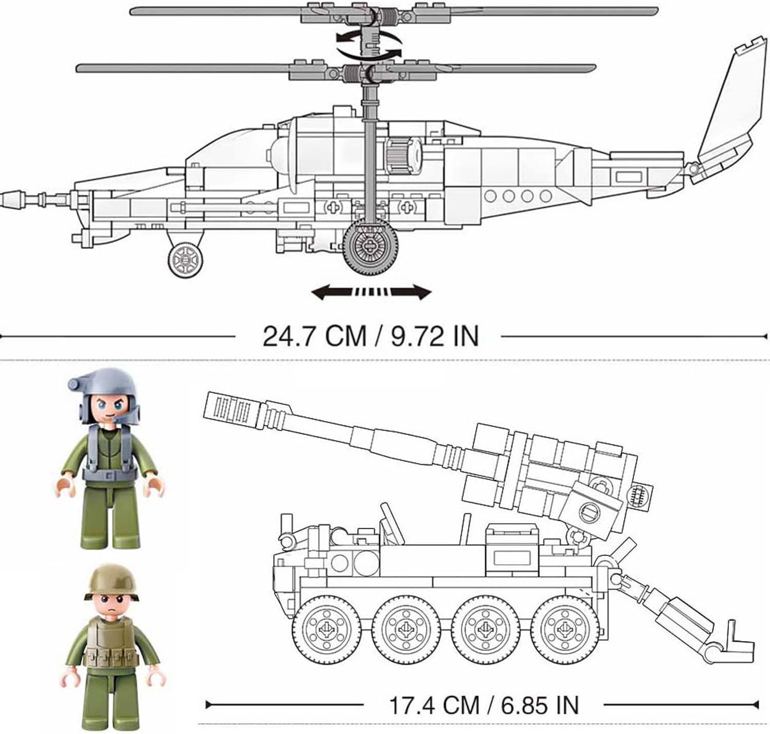 - Attack helicopter & Anti-Tank Gun Building Blocks with 7 Soldiers Minifigure