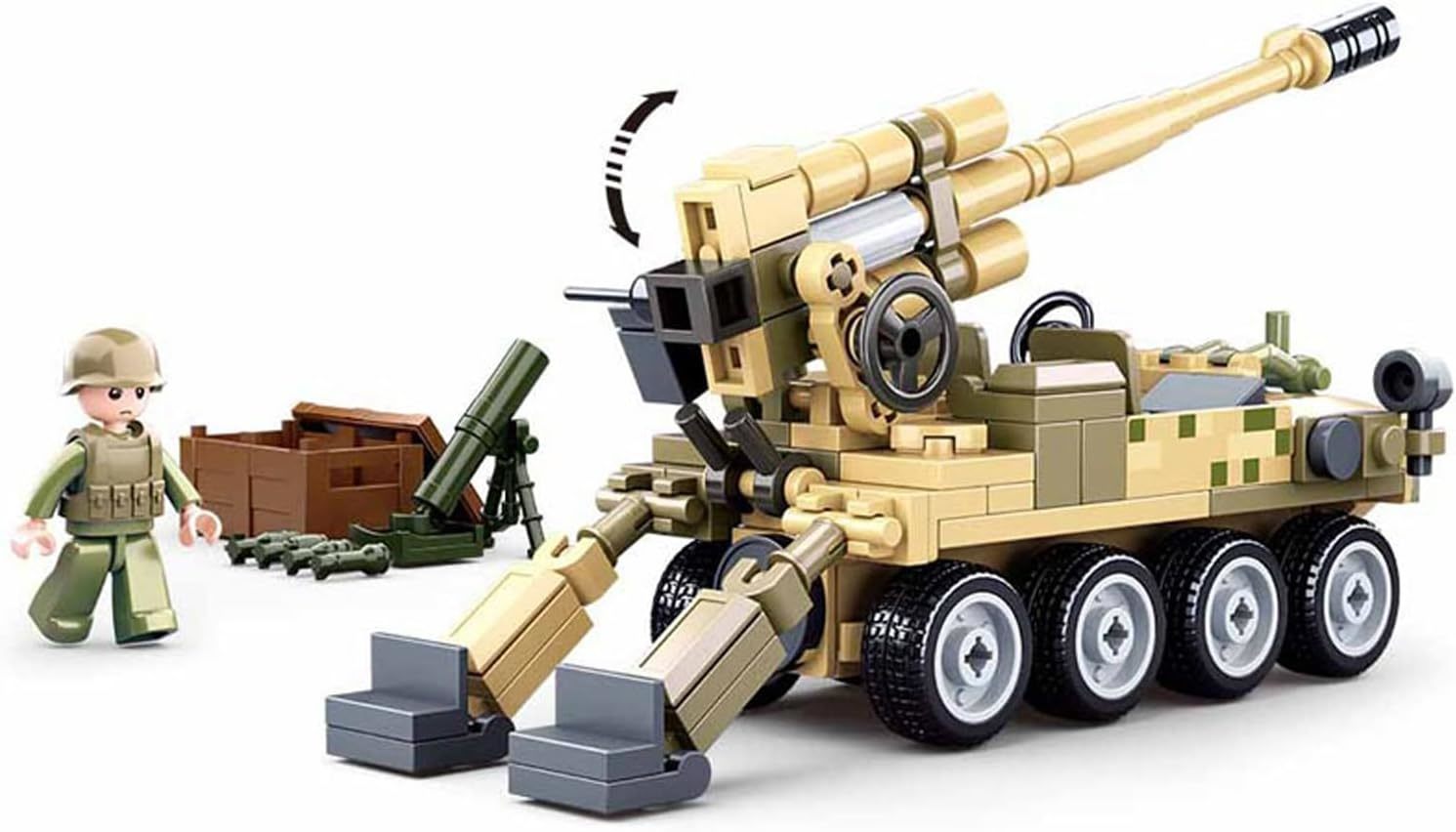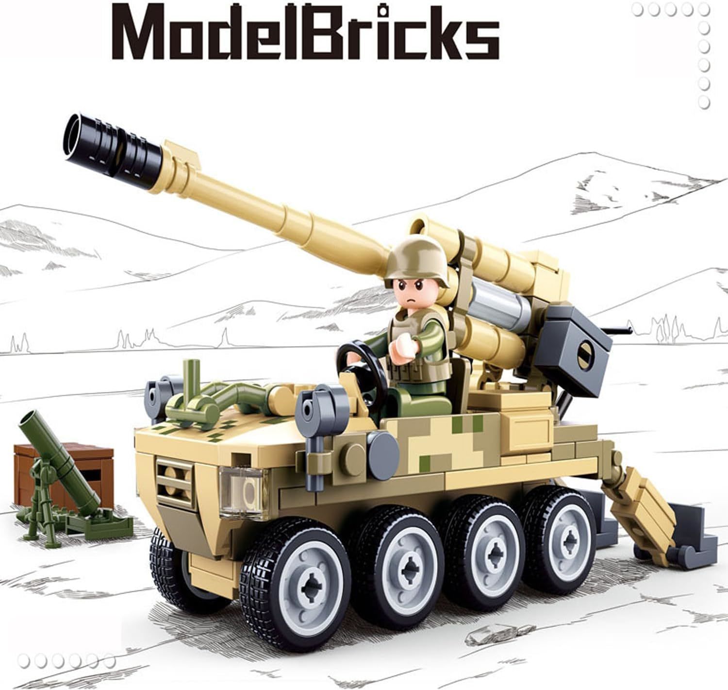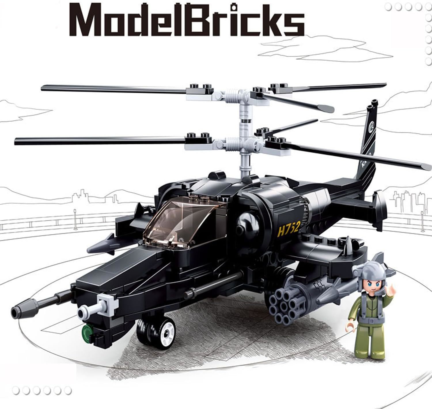 - Attack helicopter & Anti-Tank Gun Building Blocks with 7 Soldiers Minifigure