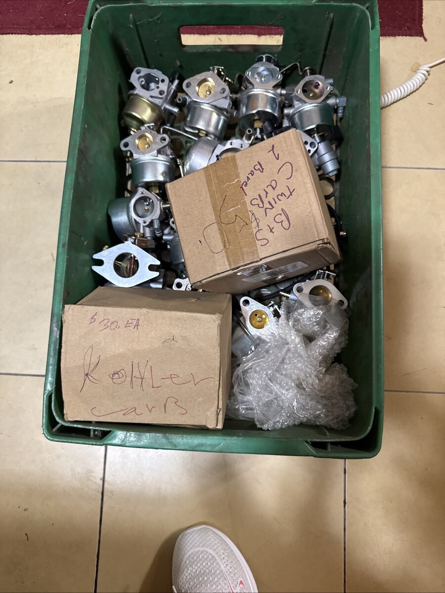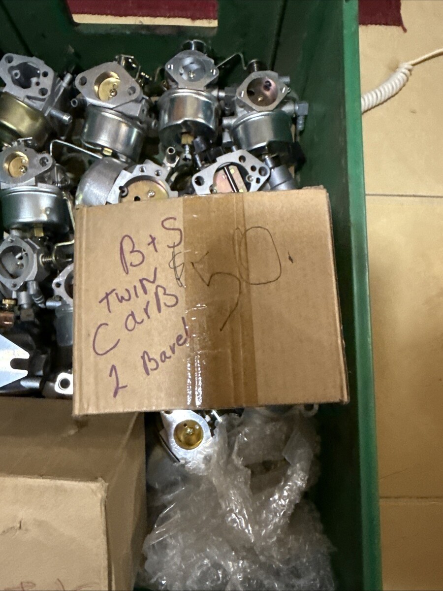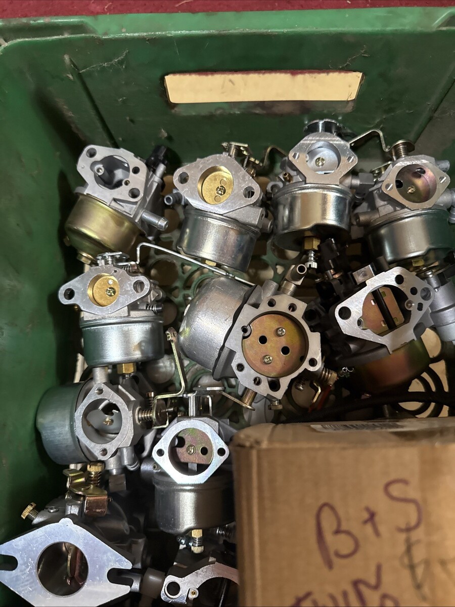 The product is a set of assorted new carburetor carbs specifically designed for push lawnmowers by Briggs Stratton, Honda, Tecumseh, and other brands. There are 16 total including a Briggs and Statton double barrel.These carburetors are essential components for maintaining and repairing lawn mowers, ensuring optimal performance and efficiency in cutting and mulching grass. With this product, users can easily replace damaged or worn-out carburetors on their or their customers lawnmowers, ensuring smooth operation and reliable power output for their gardening and outdoor maintenance tasks.