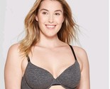 Auden Women's 36C Cotton Lightly Lined Demi T-Shirt Bra Dark Gray Heather